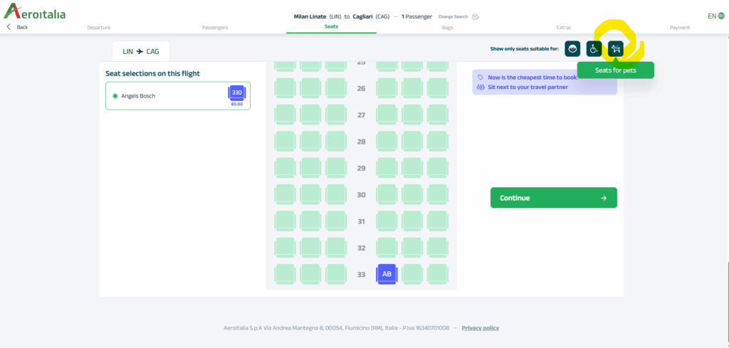 The UI from Aeroitalia, for pet travel, is one of the best ones